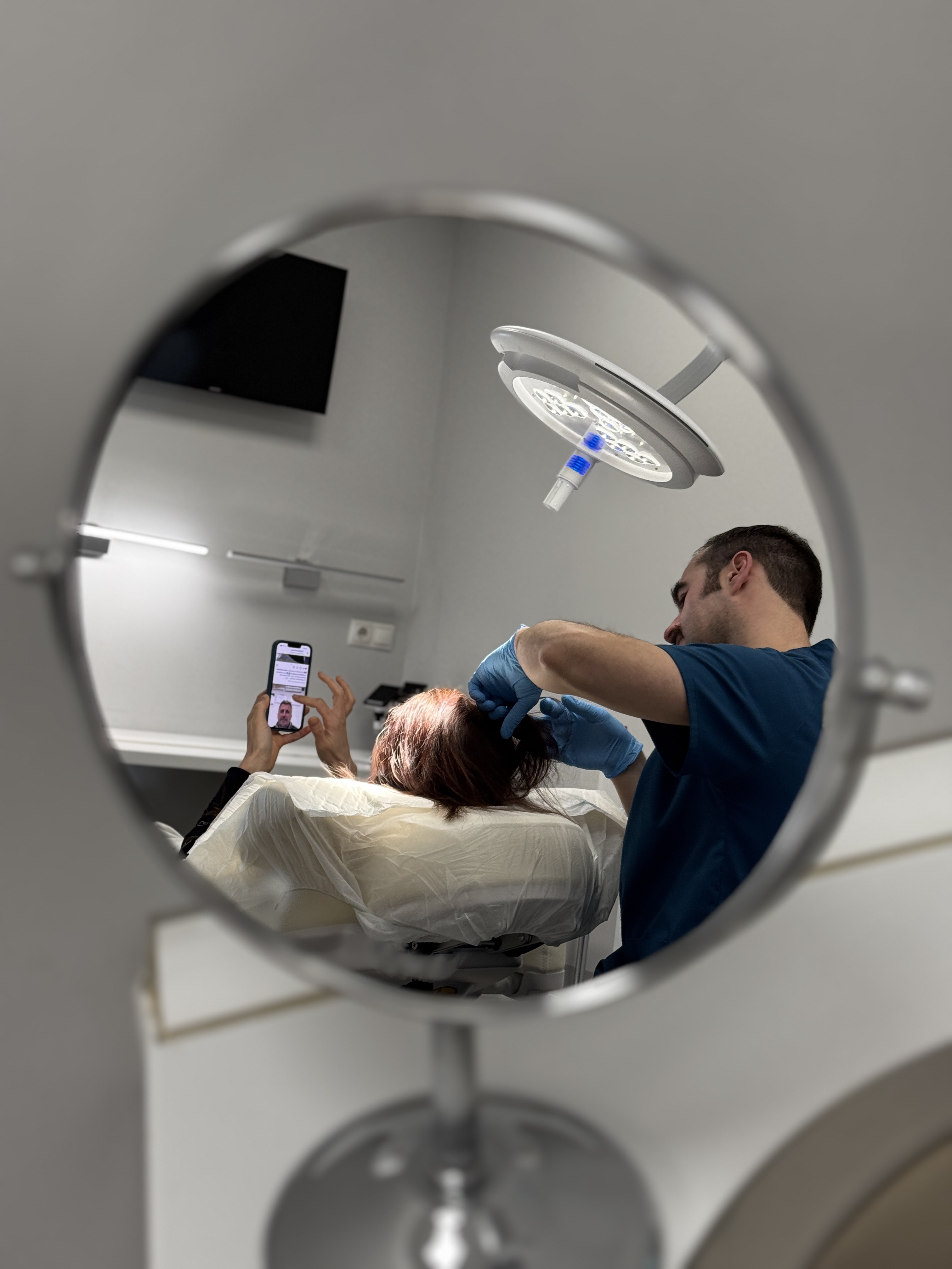 No, el injerto capilar no es una intervención dolorosa. Antes de comenzar utilizamos una preanestesia con pistola, que permite anestesiar la zona sin aguja, de forma muy cómoda.